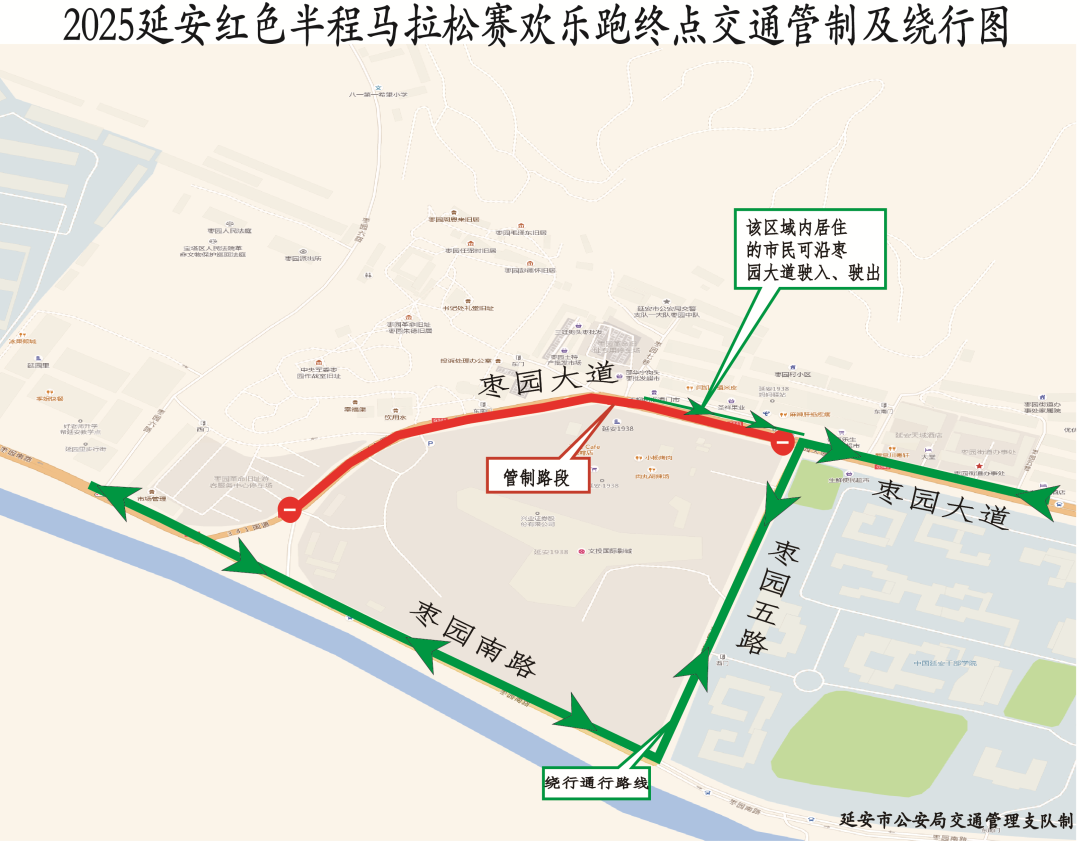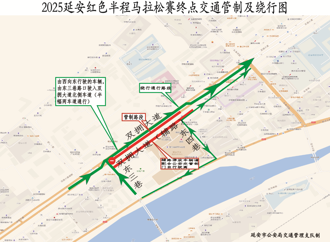 2025延安红色半程马拉松将于9月21日(星期日)上午7:30在延安市宝塔区举办。为确保赛事安全顺利进行,根据道路交通安全法律法规有关规定,决定对宝塔区延河东路、枣园大道、延河西路、延河北路、双拥大道等相关道路分时、分段采取临时交通管理措施。现将有关事项通告如下: