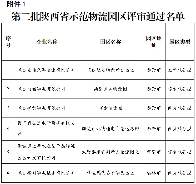 1.第二批陕西省示范物流园区评审通过名单