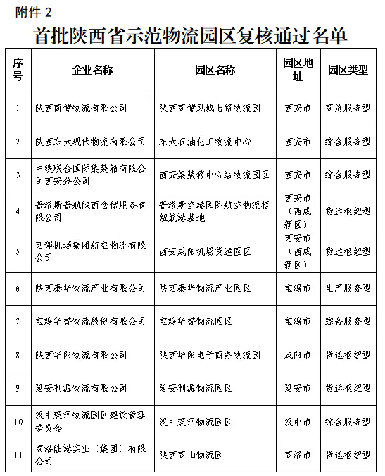 2.首批陕西省示范物流园区复核通过名单