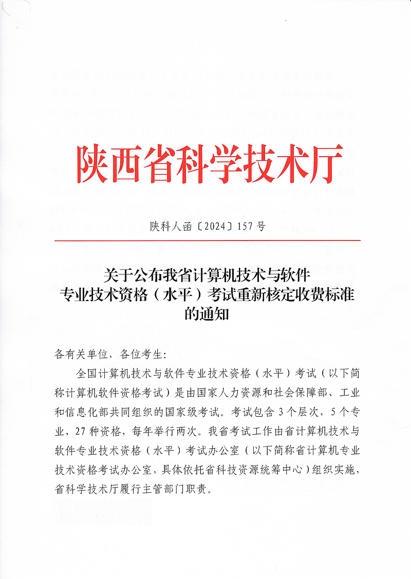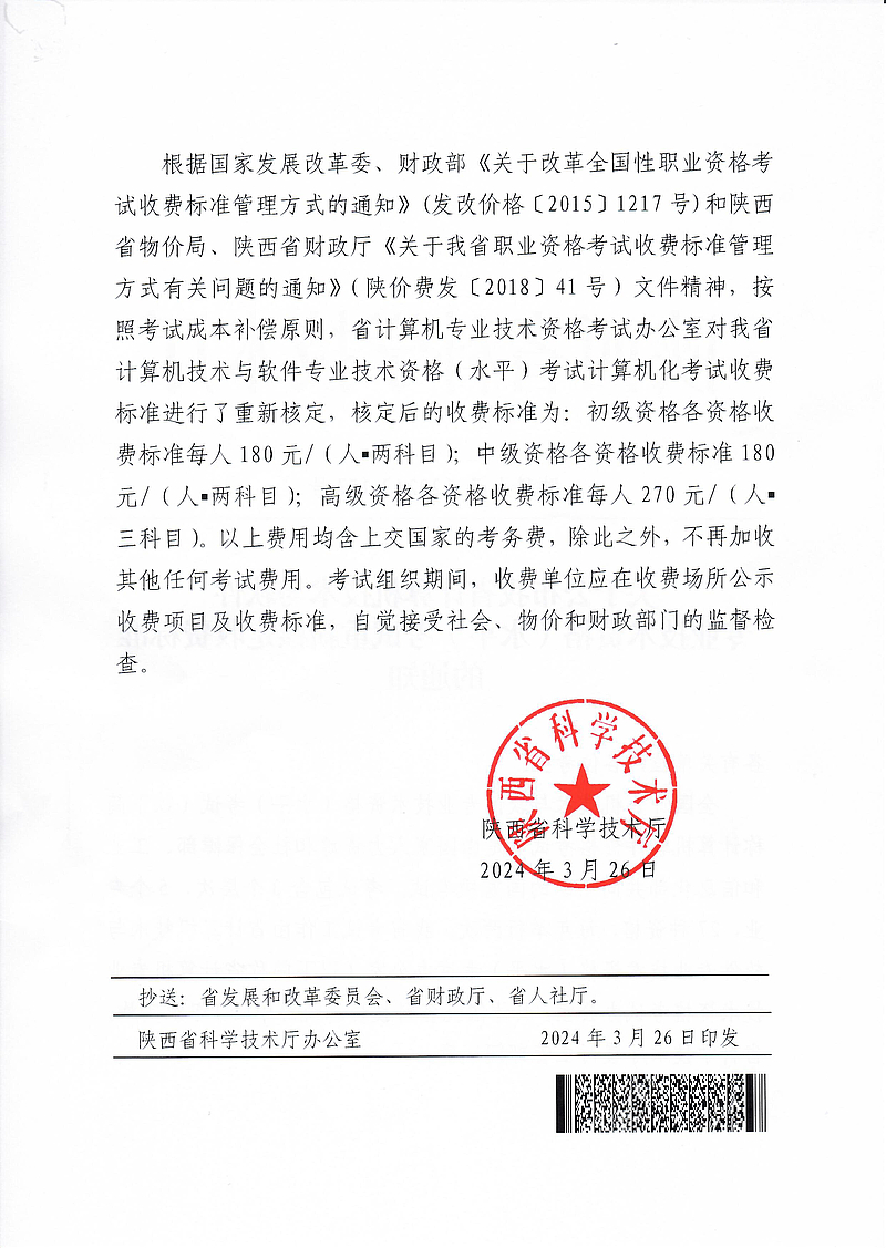 关于公布我省计算机技术与软件专业技术资格(水平)考试重新核定收费标准的通知
