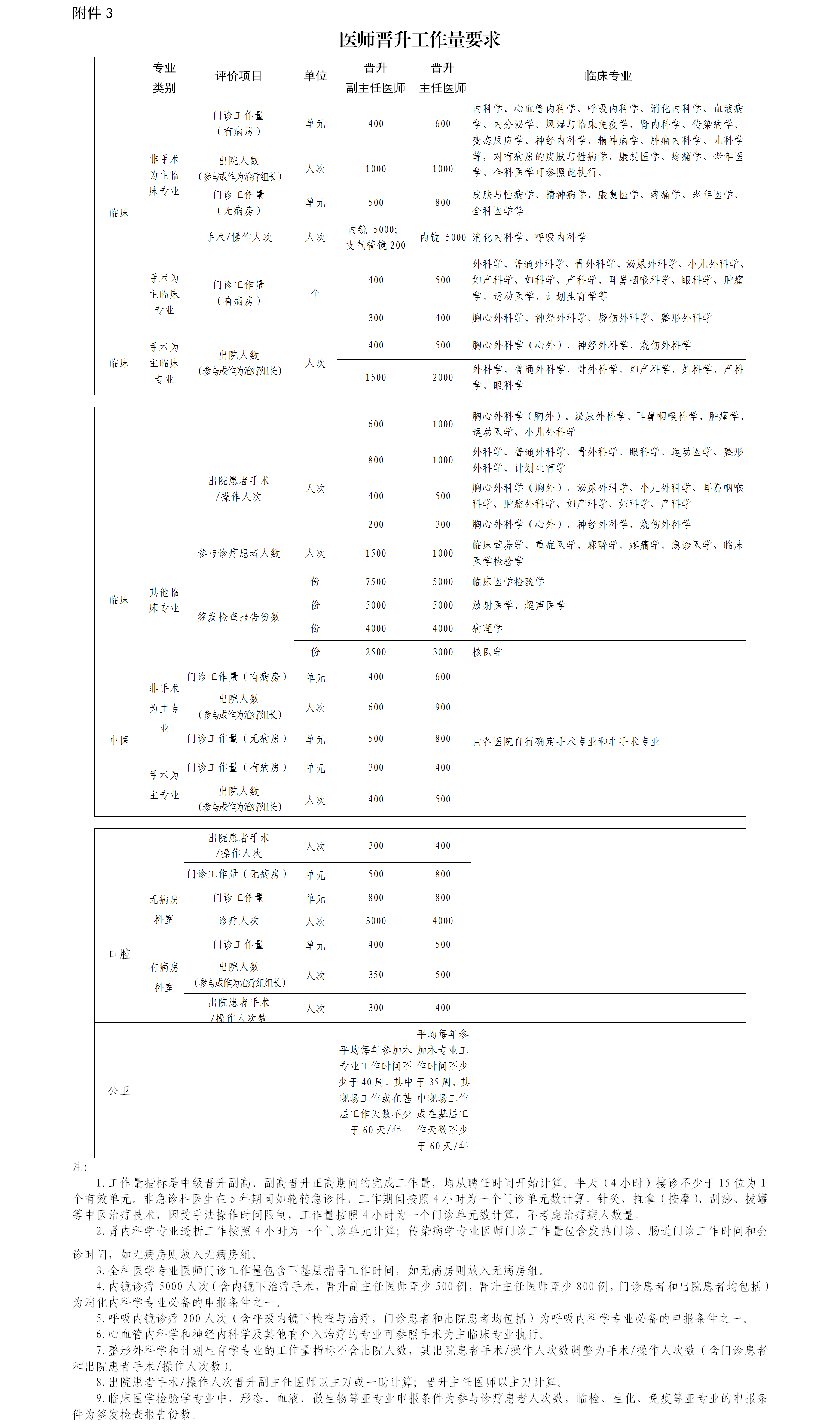 ①担任主治医师期间,完成规定的工作数量要求(附件3)。