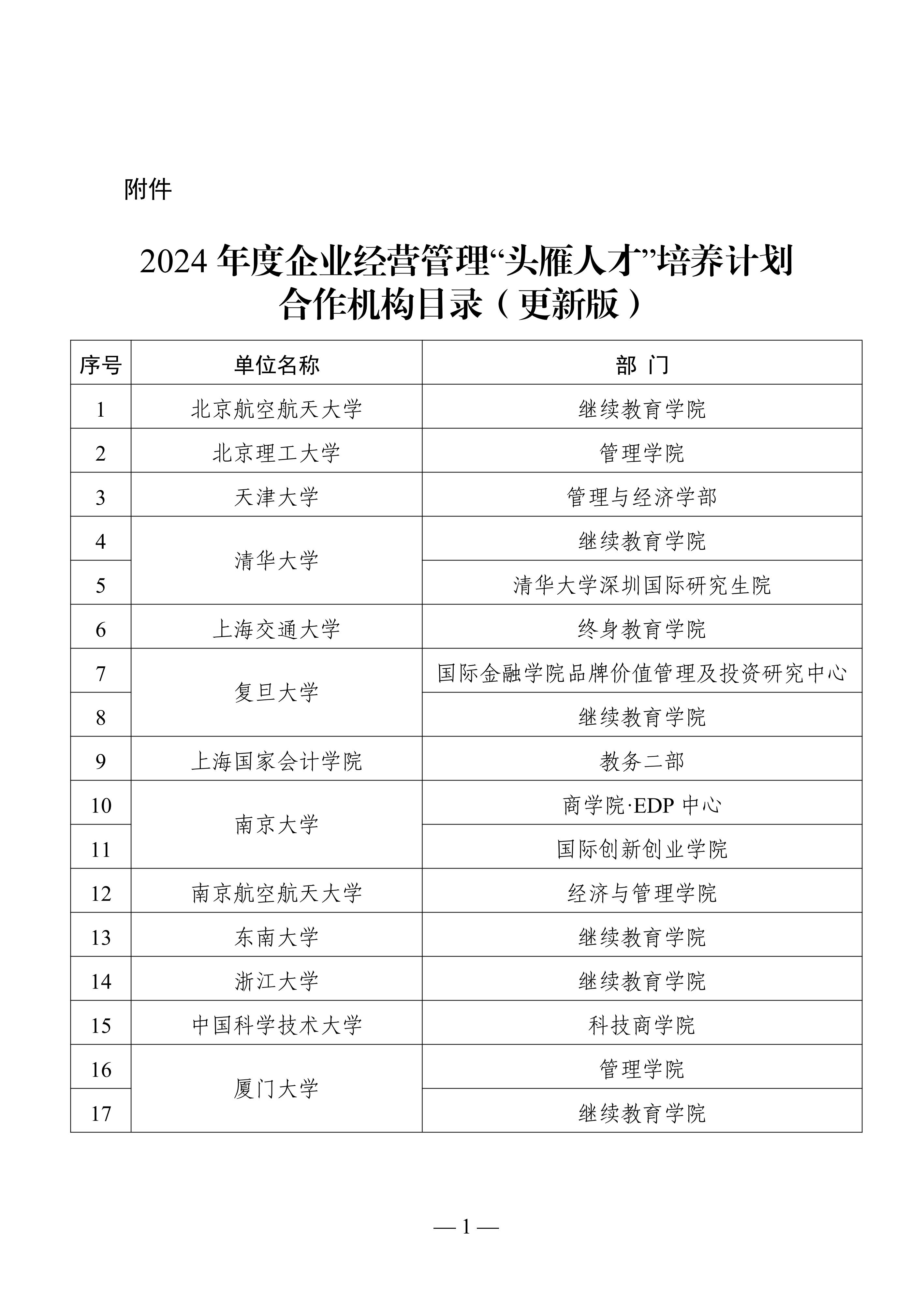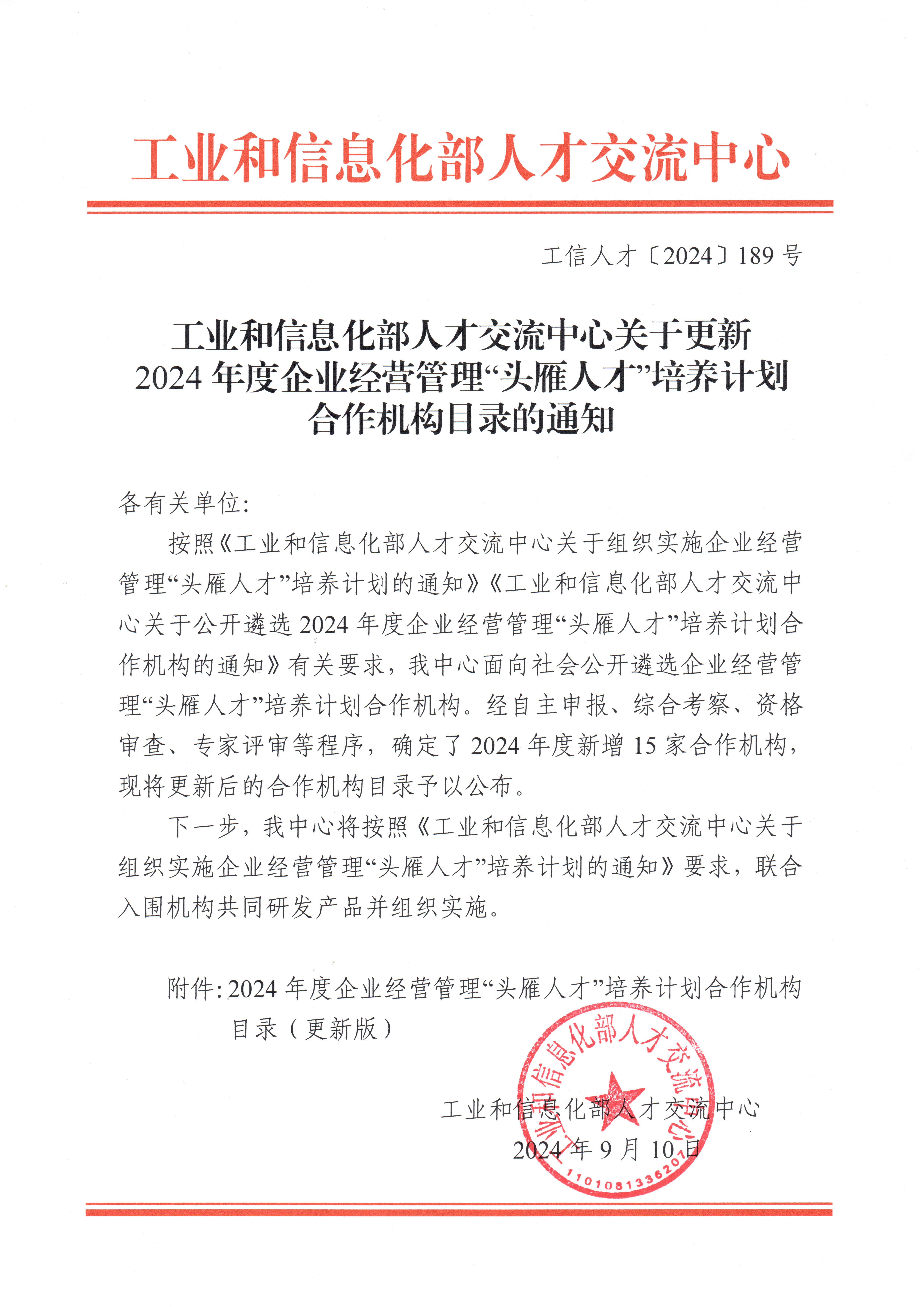 工业和信息化部人才交流中心关于更新2024年度企业经营管理“头雁人才”培养计划合作机构目录的通知