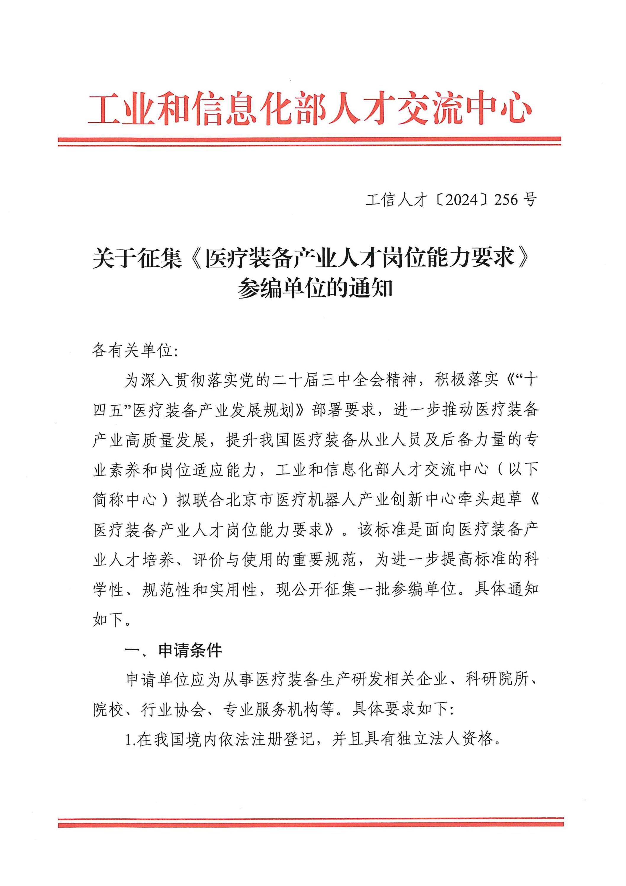 关于征集《医疗装备产业人才岗位能力要求》参编单位的通知