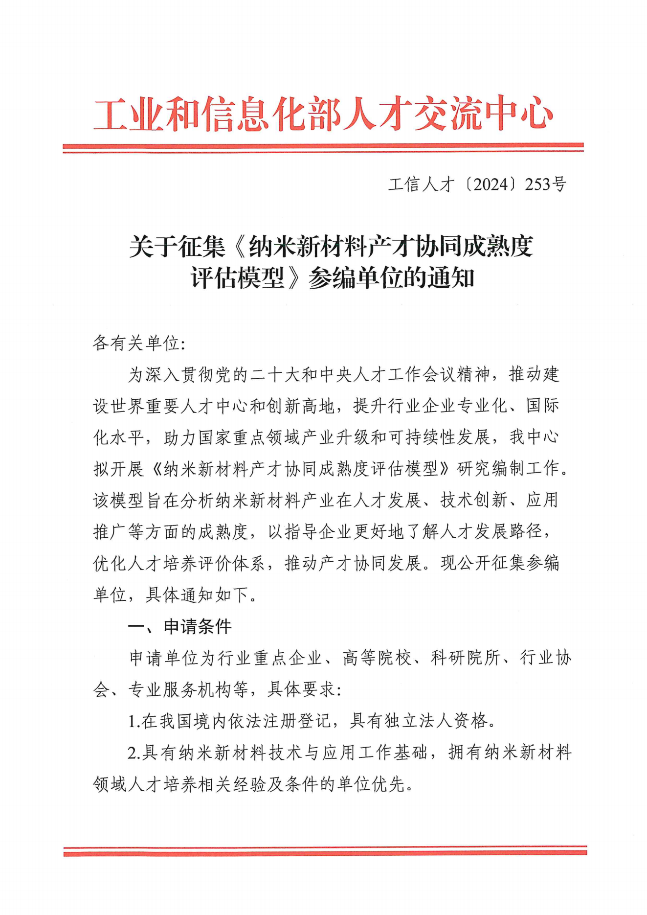 关于征集《纳米新材料产才协同成熟度评估模型》的通知