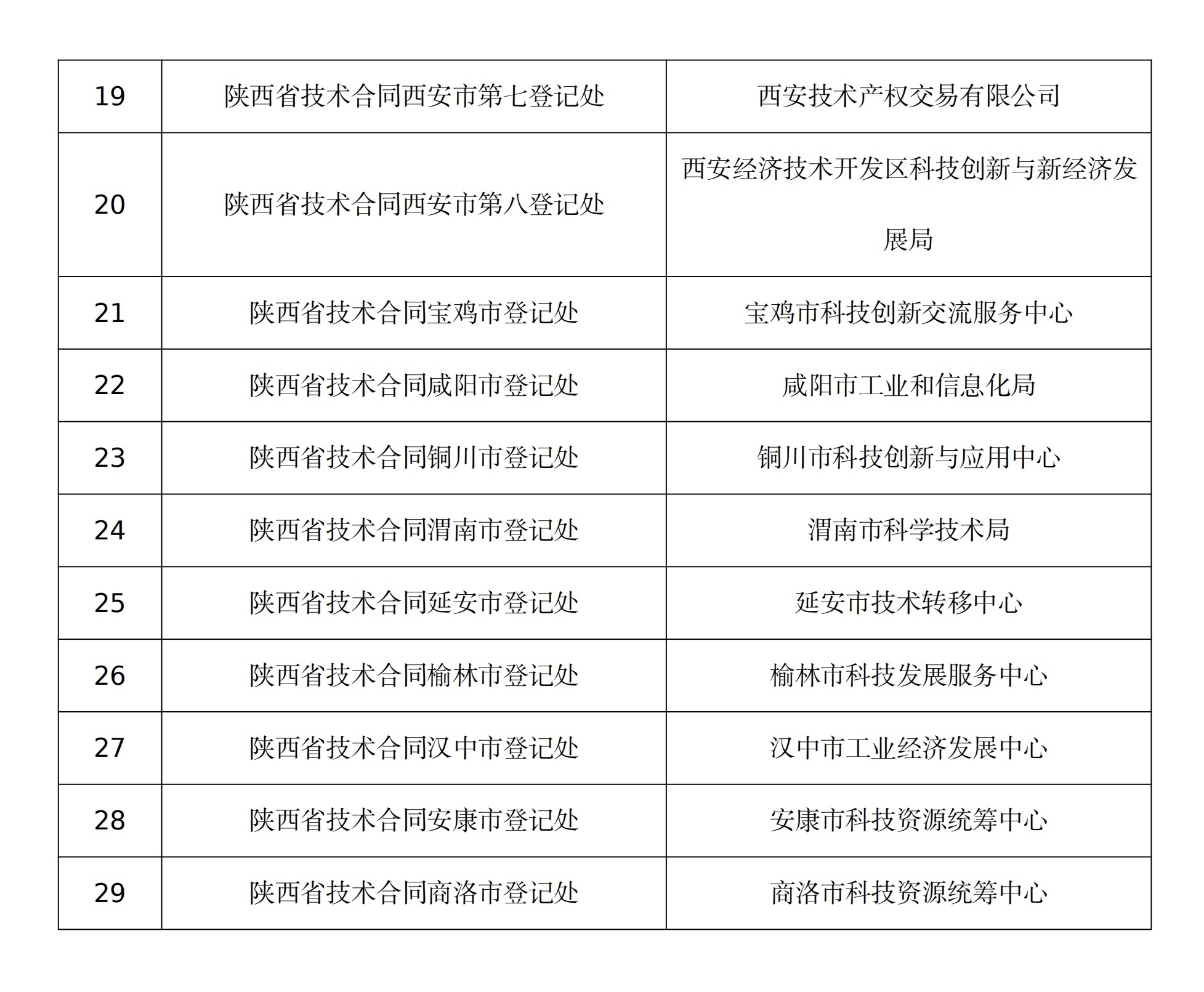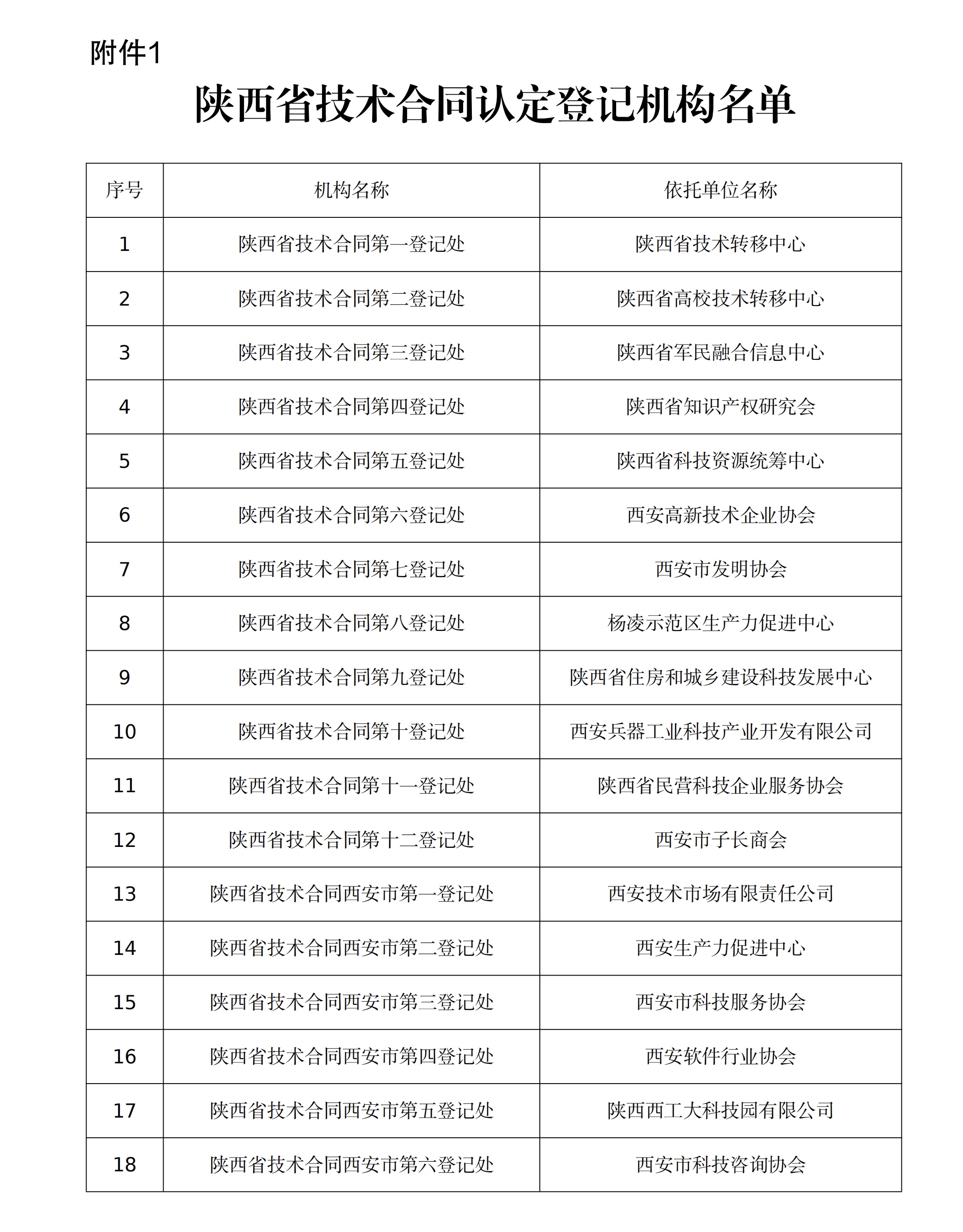1.陕西省技术合同认定登记机构名单