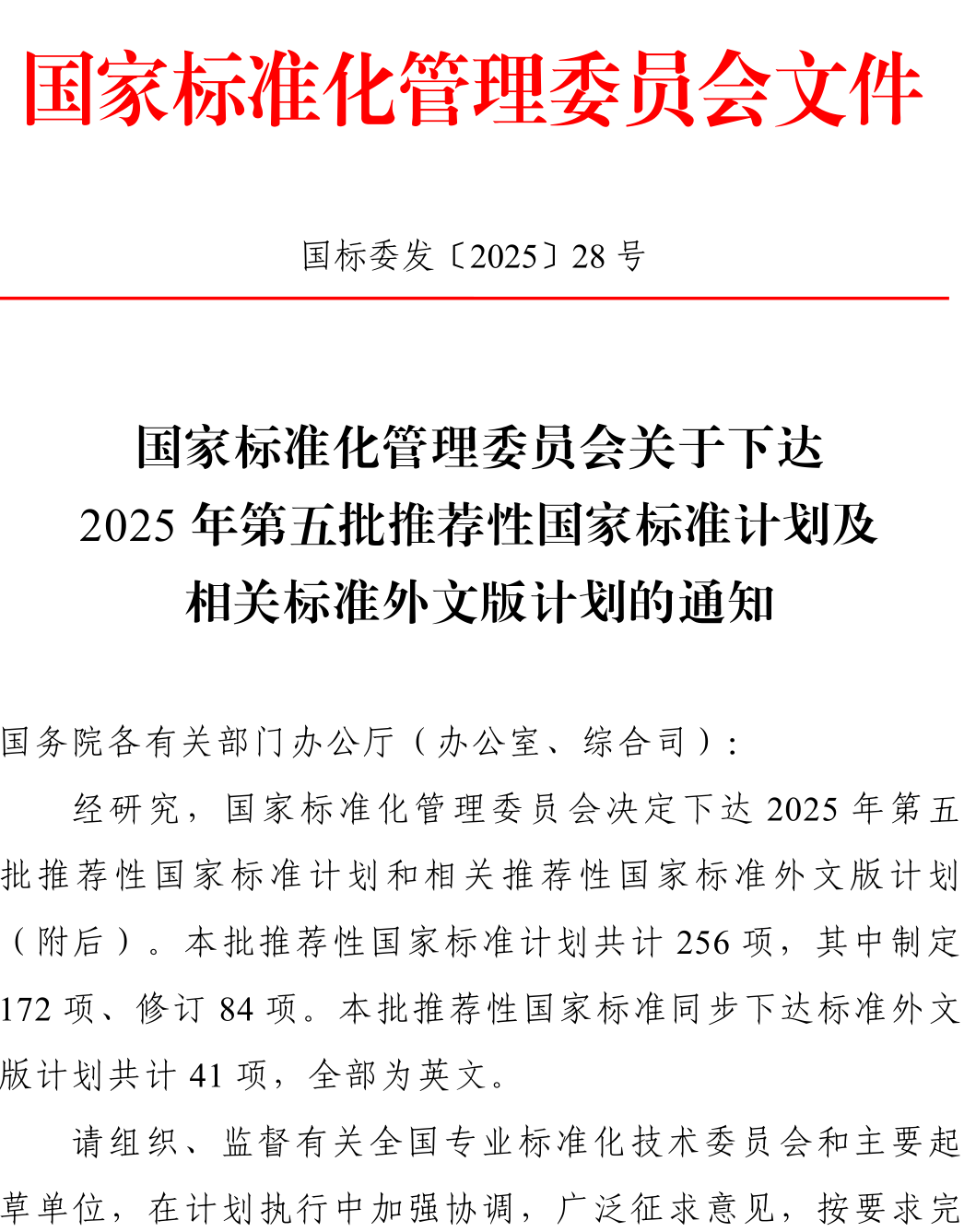 1.国家标准化管理委员会关于下达2025年第五批推荐性国家标准计划及相关标准外文版计划的通知.doc