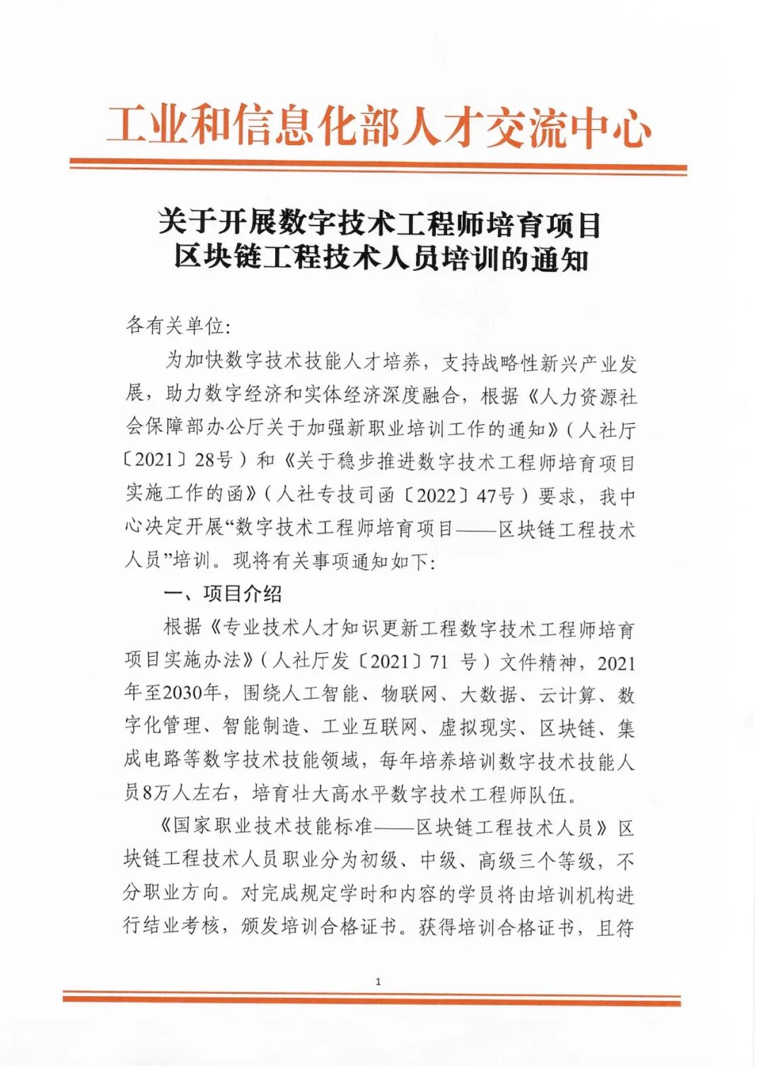 关于开展数字技术工程师培育项目区块链工程技术人员培训的通知