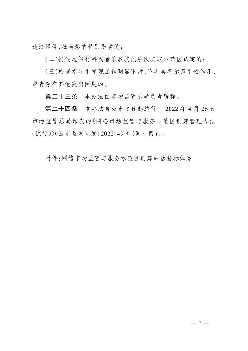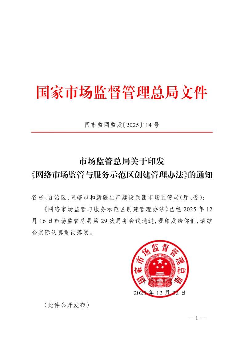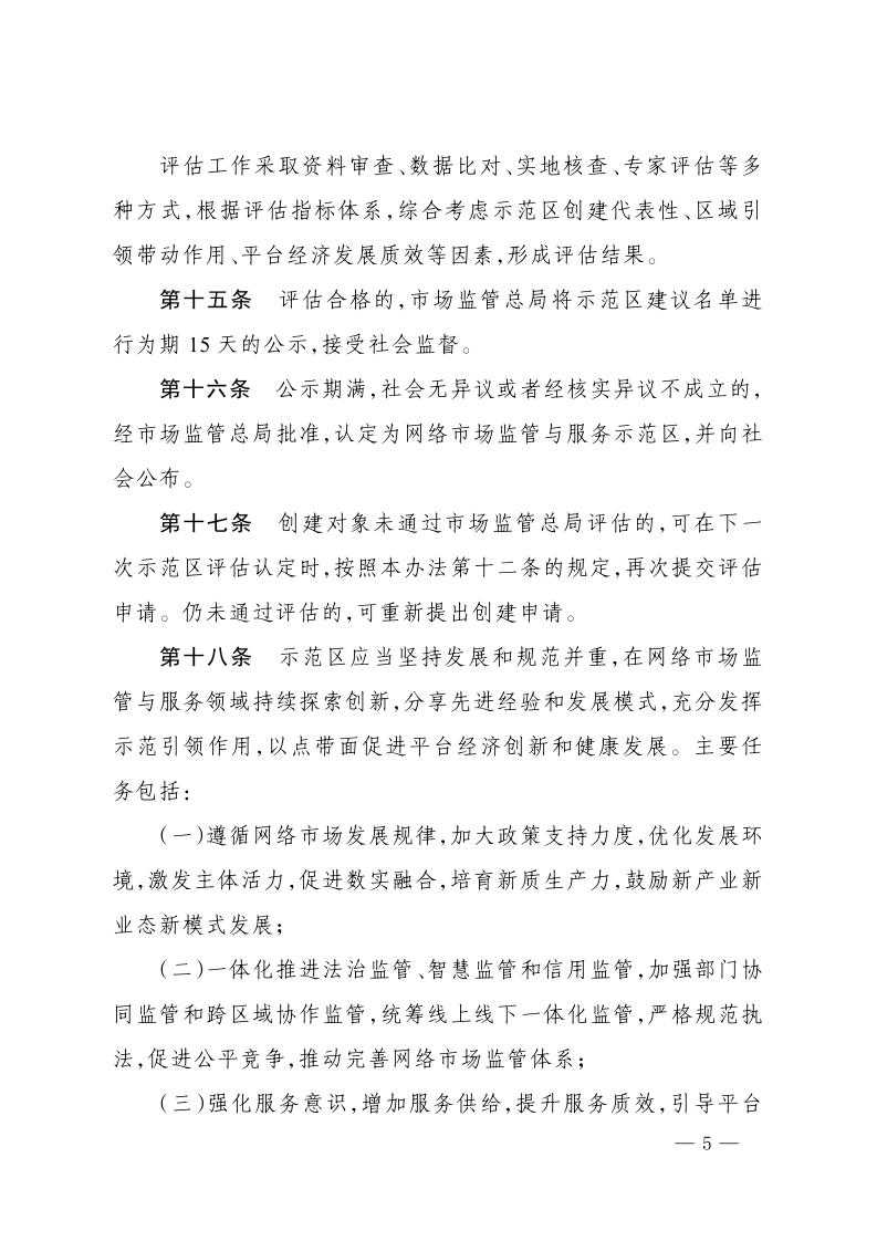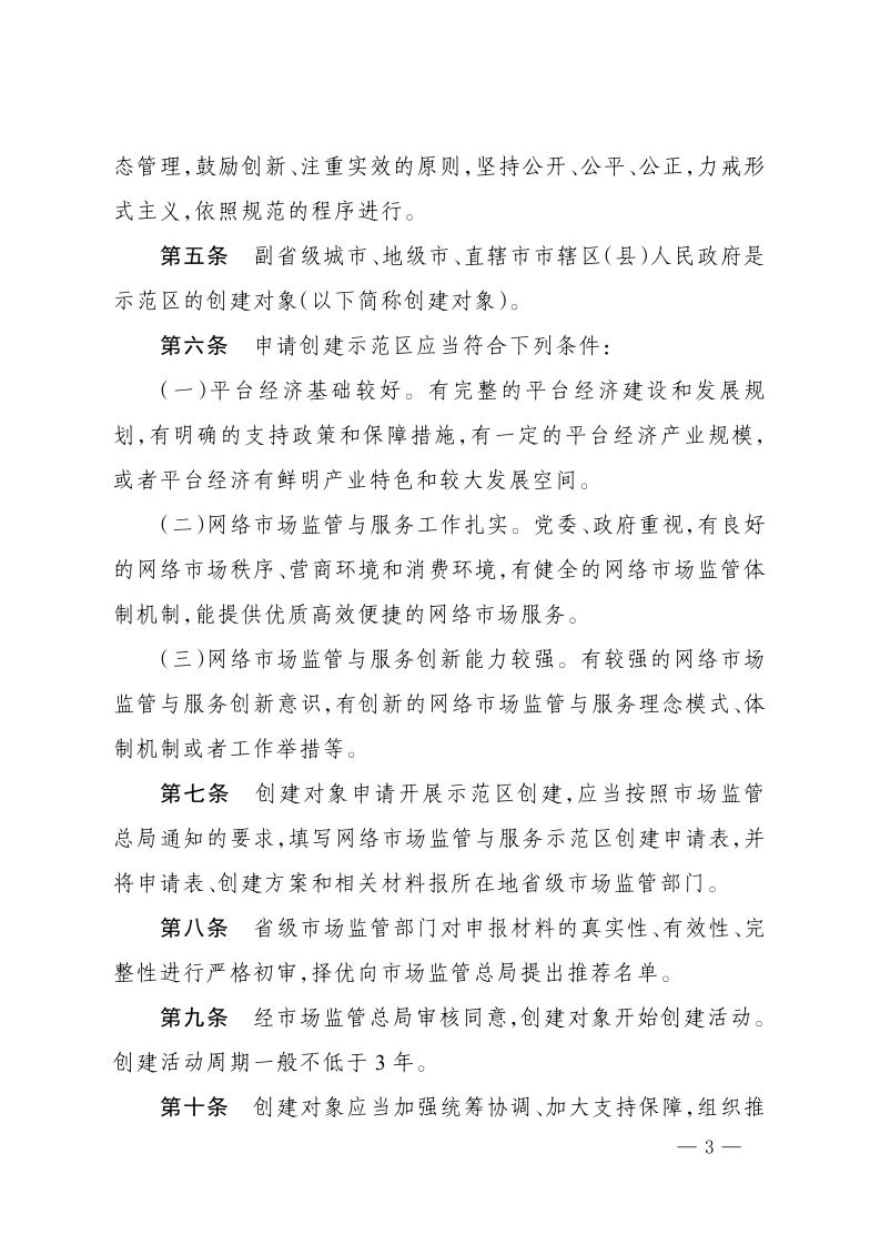 市场监管总局关于印发《网络市场监管与服务示范区创建管理办法》的通知