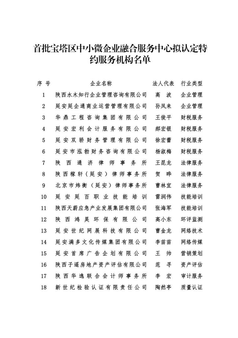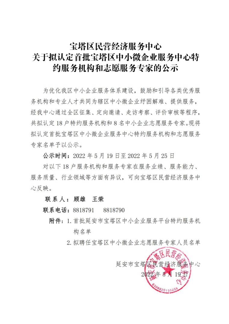 宝塔区民营经济服务中心 关于拟认定首批宝塔区中小微企业服务中心特约服务机构和志愿服务专家的公示