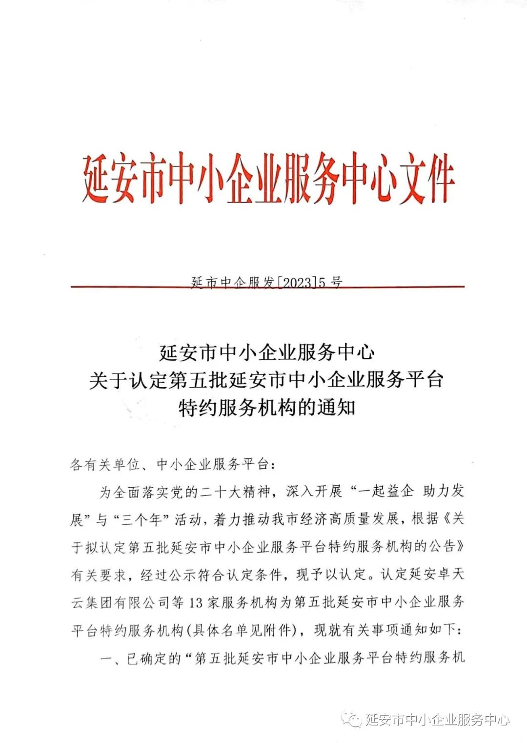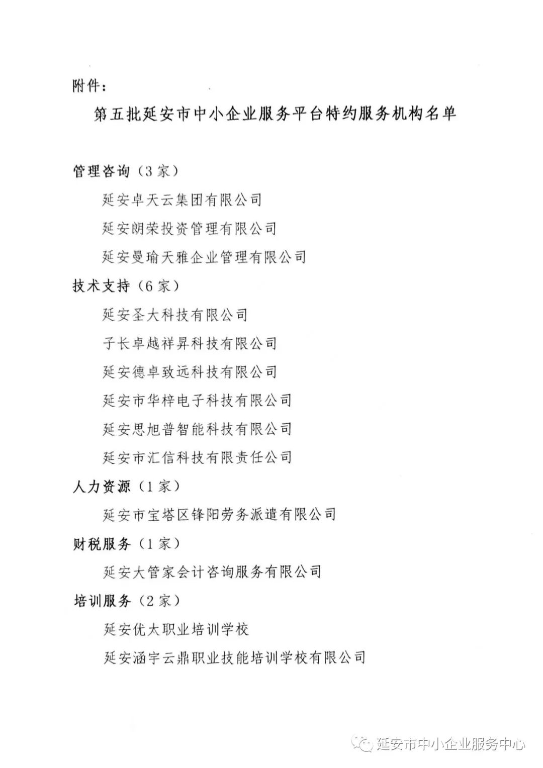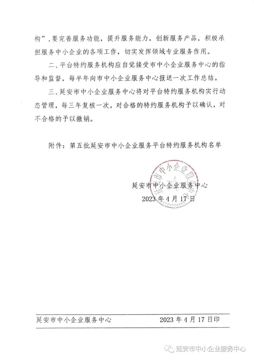 关于认定第五批延安市中小企业服务平台特约服务机构的通知