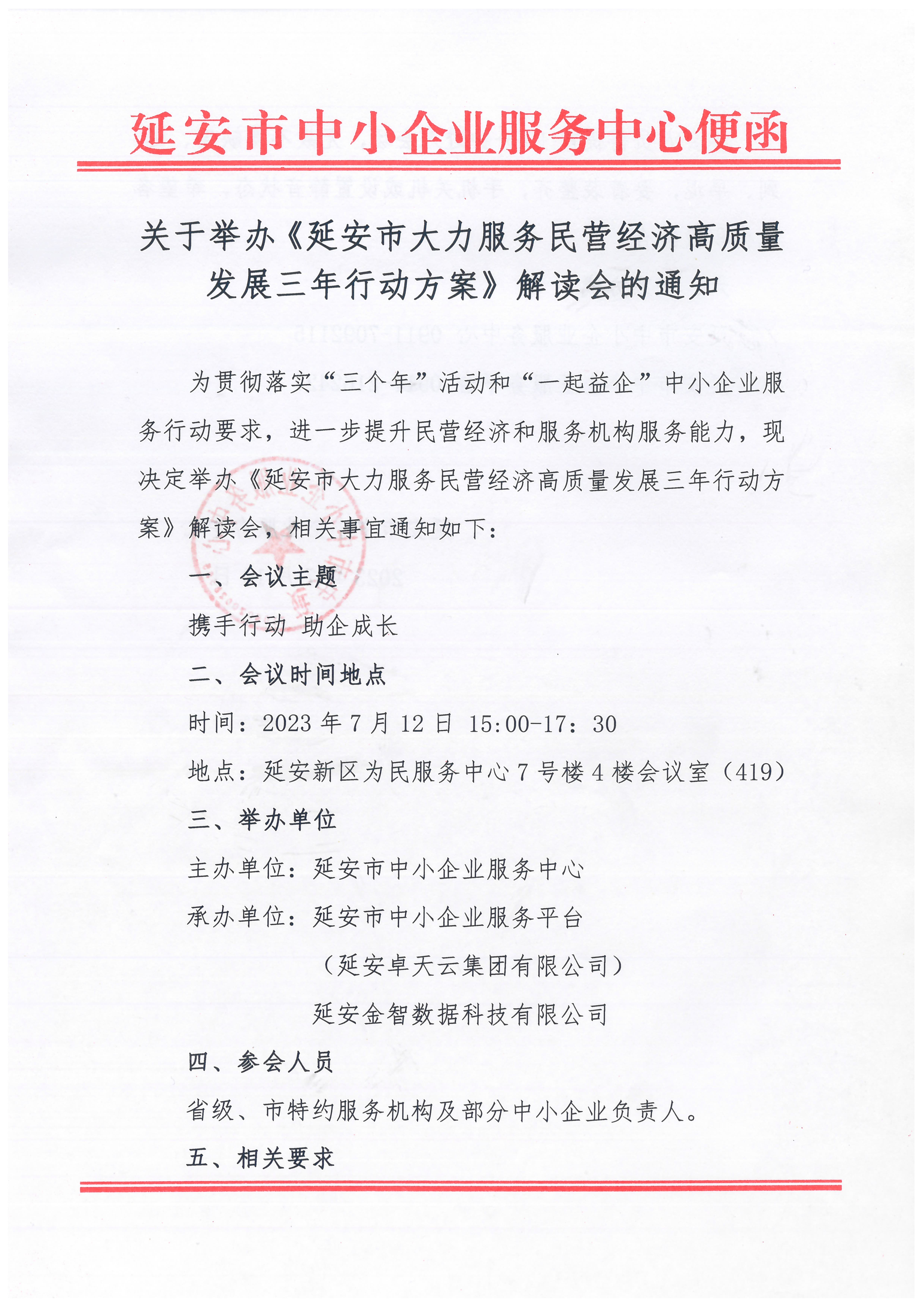 关于举办《延安市大力服务民营经济高质量发展三年行动方案》解读会的通知