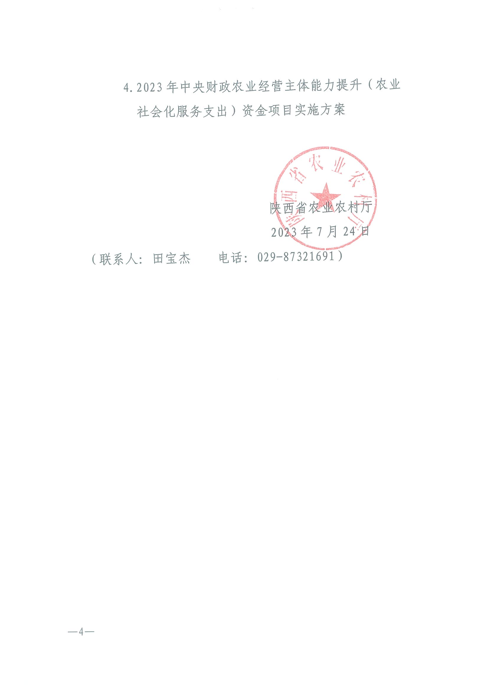 陕西省农业农村厅计划财务处 2023-07-31
