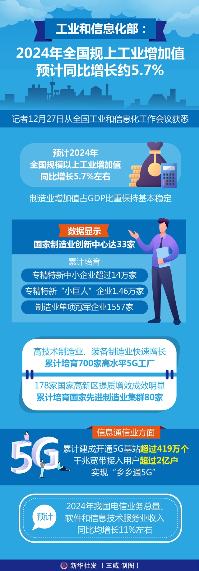 一图读懂|工业和信息化部:2024年全国规上工业增加值预计同比增长约5.7%