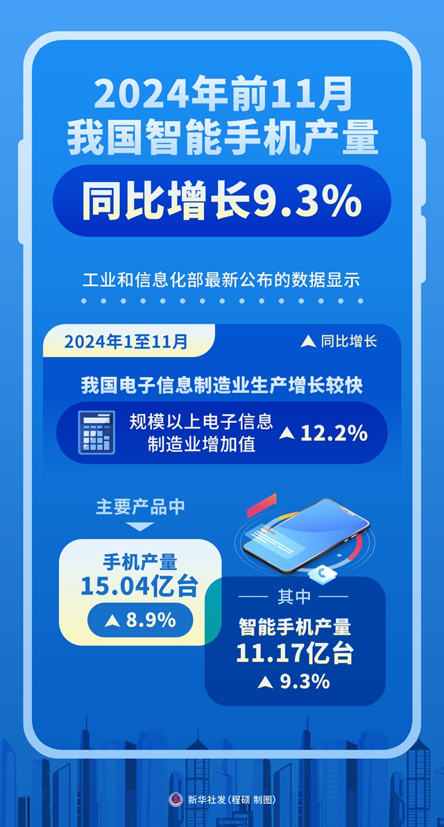 一图读懂 | 图表:2024年前11月我国智能手机产量同比增长9.3%