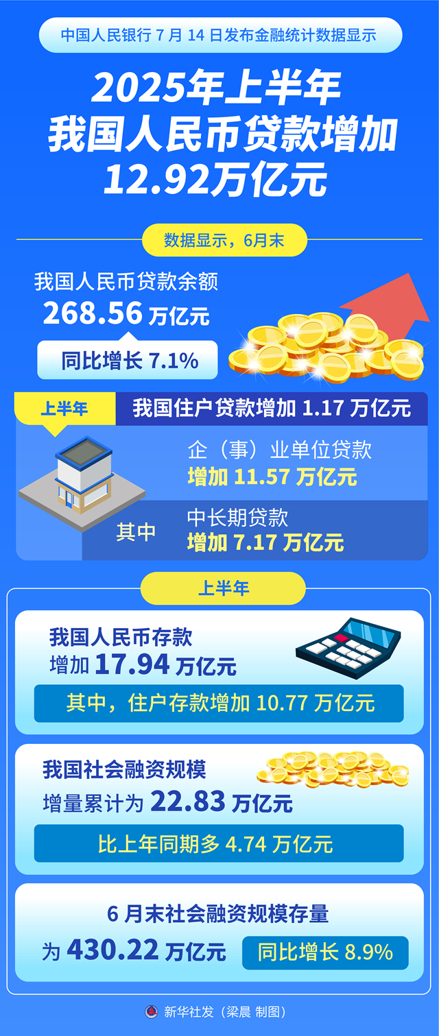 一图读懂 | 2025年上半年我国人民币贷款增加12.92万亿元
