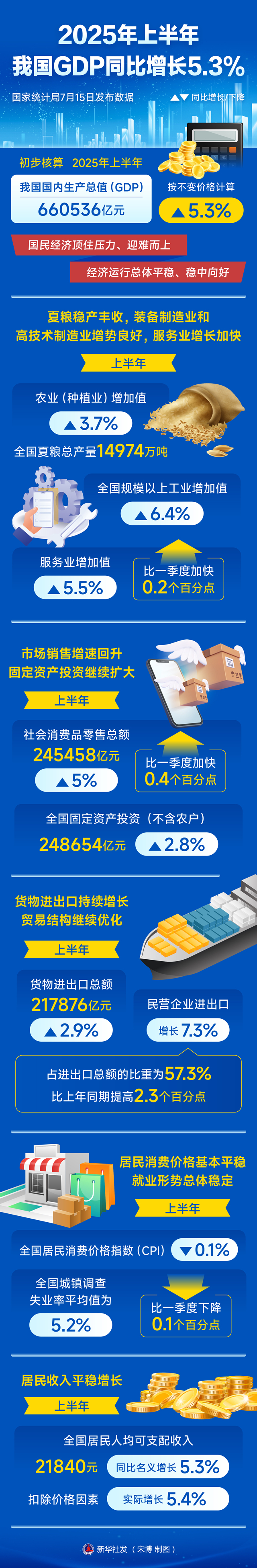 一图读懂 | 2025年上半年我国GDP同比增长5.3%