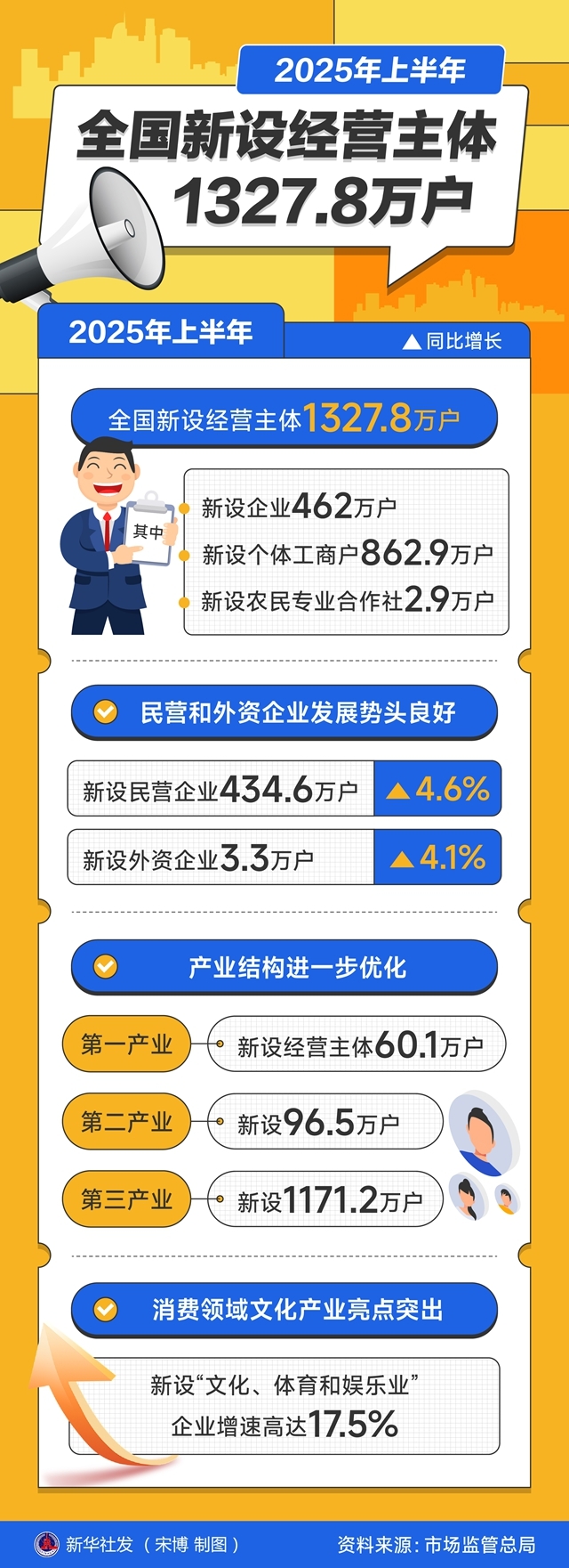 一图读懂 | 2025年上半年全国新设经营主体1327.8万户
