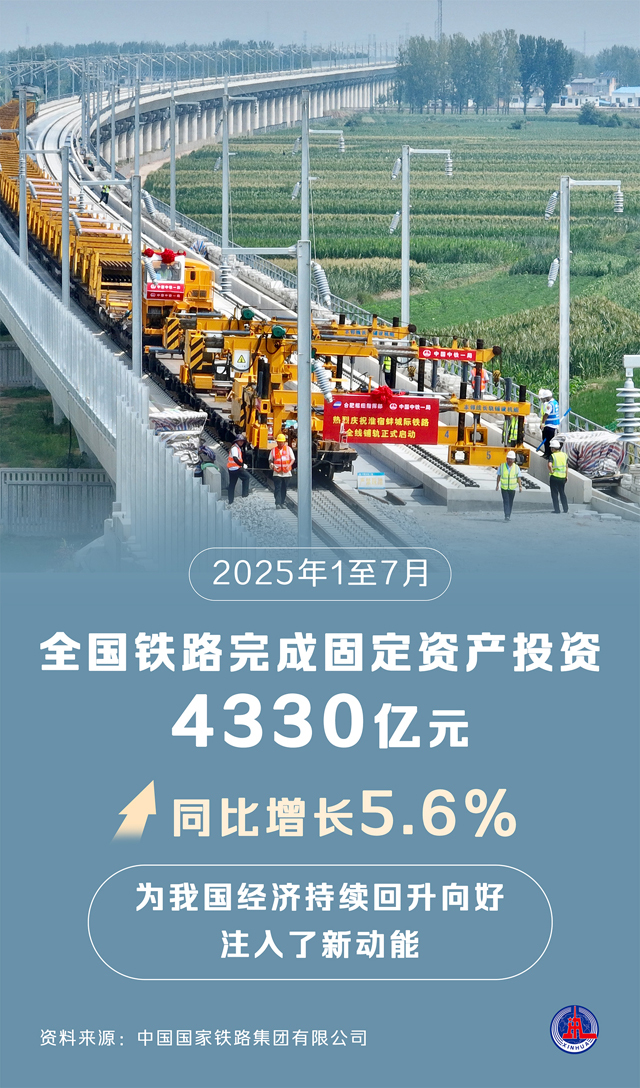 一图读懂 | 2025年1至7月全国铁路完成固定资产投资4330亿元