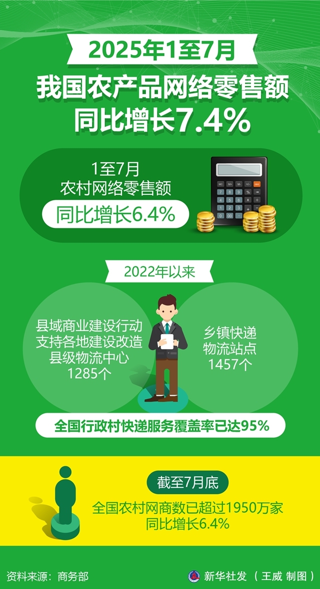 一图读懂|2025年1至7月我国农产品网络零售额同比增长7.4%