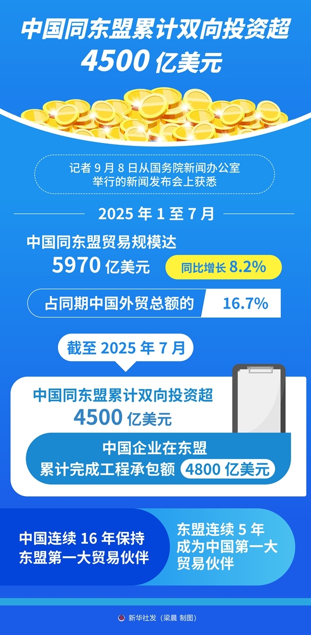 一图读懂 | 中国同东盟累计双向投资超4500亿美元