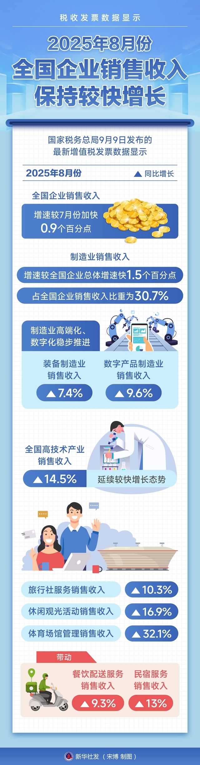 一图读懂 | 税收发票数据显示:2025年8月份全国企业销售收入保持较快增长