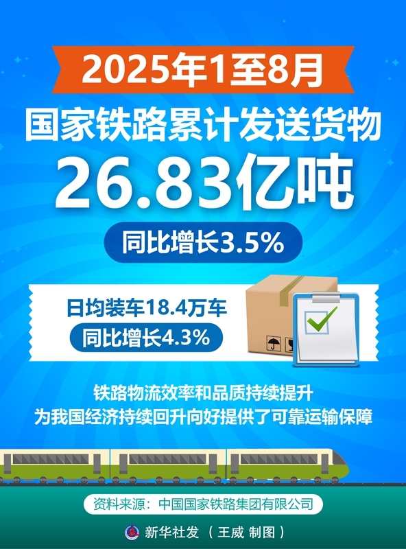 一图读懂 | 2025年1至8月国家铁路累计发送货物26.83亿吨