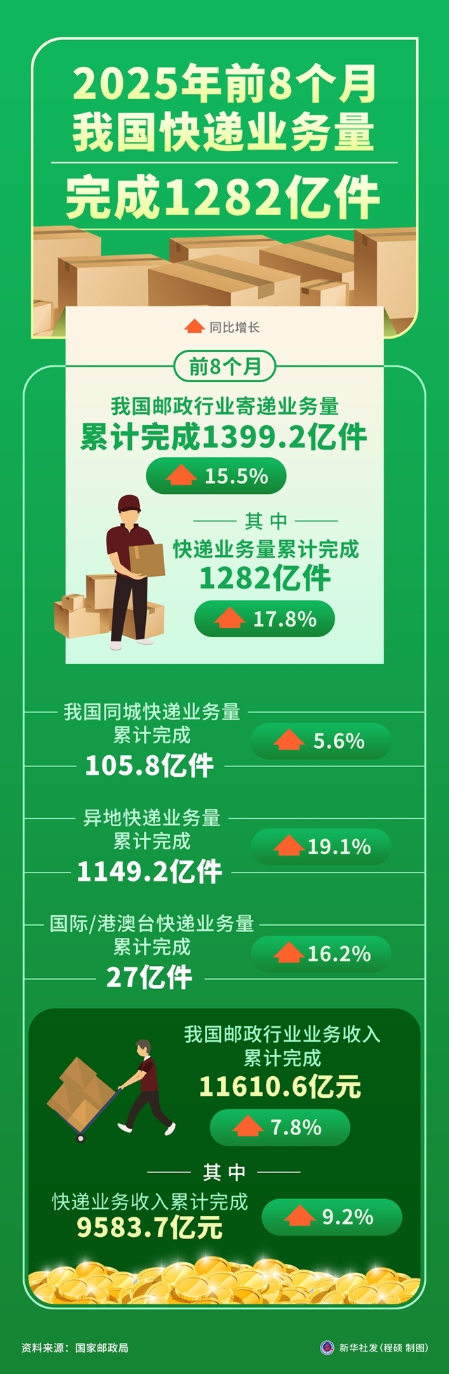 一图读懂 | 2025年前8个月我国快递业务量完成1282亿件