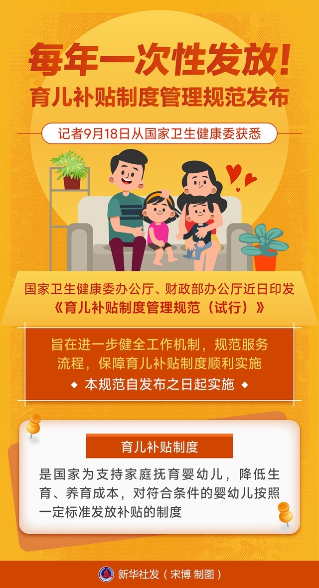一图读懂 | 每年一次性发放!育儿补贴制度管理规范发布