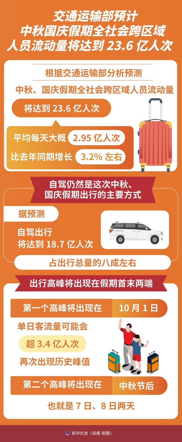 一图读懂 | 交通运输部预计中秋国庆假期全社会跨区域人员流动量将达到23.6亿人次