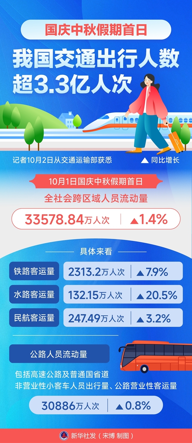 一图读懂 | 国庆中秋假期首日我国交通出行人数超3.3亿人次
