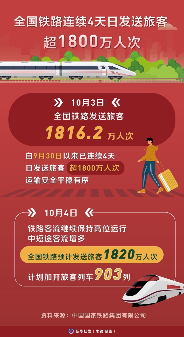 一图读懂 | 全国铁路连续4天日发送旅客超1800万人次