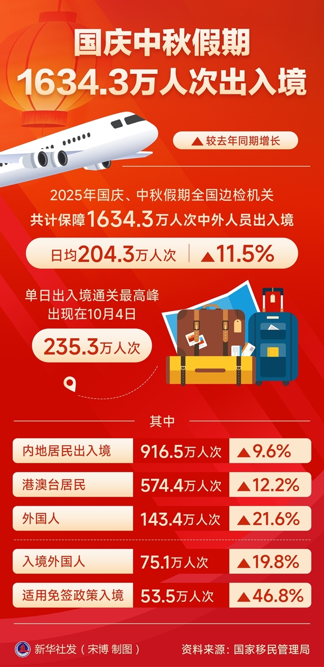 一图读懂 | 国庆中秋假期1634.3万人次出入境