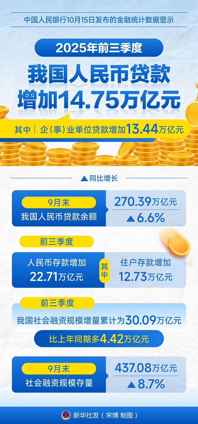 一图读懂 | 2025年前三季度我国人民币贷款增加14.75万亿元