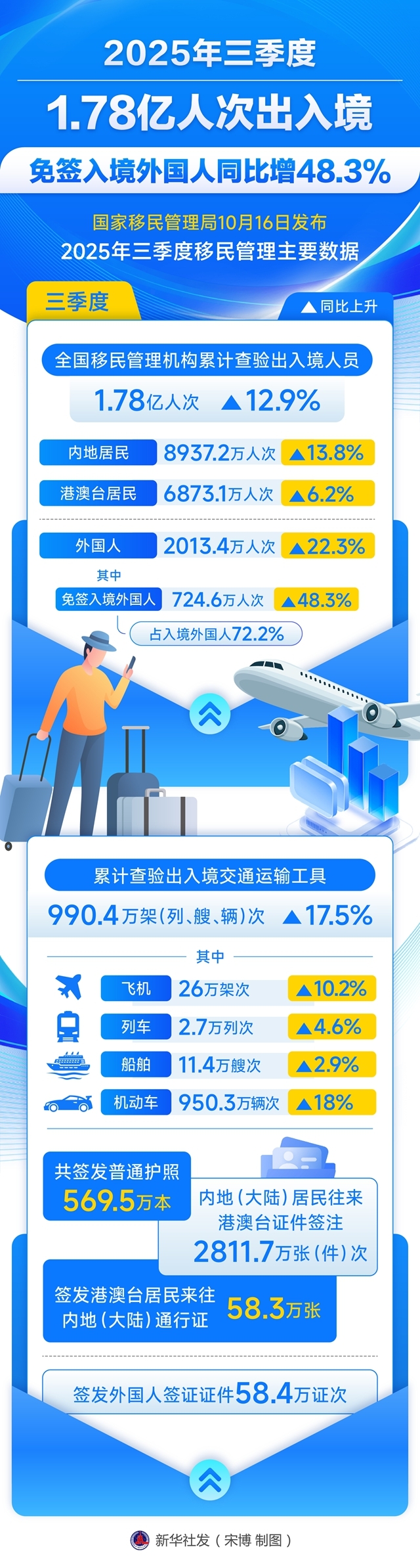 一图看懂丨三季度1.78亿人次出入境 免签入境外国人同比增48.3%