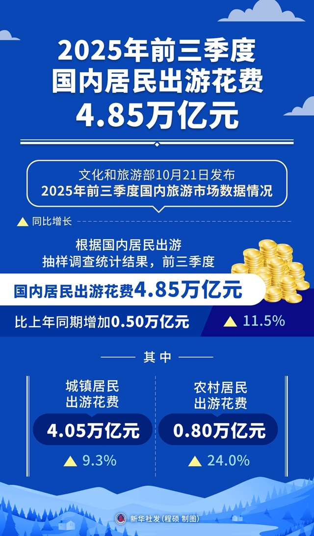 一图读懂 | 2025年前三季度国内居民出游花费4.85万亿元