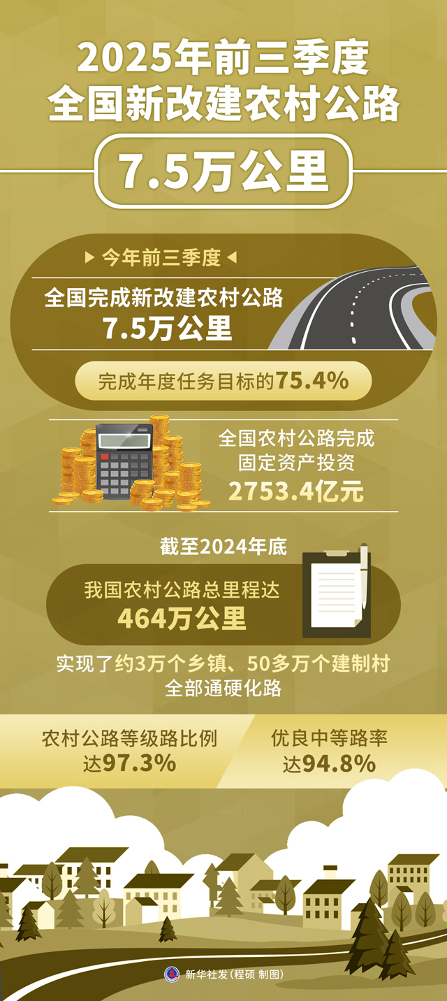 一图读懂 | 2025年前三季度全国新改建农村公路7.5万公里