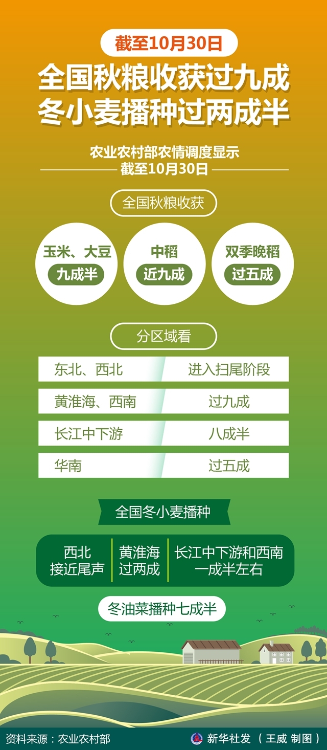 一图读懂 | 全国秋粮收获过九成 冬小麦播种过两成半