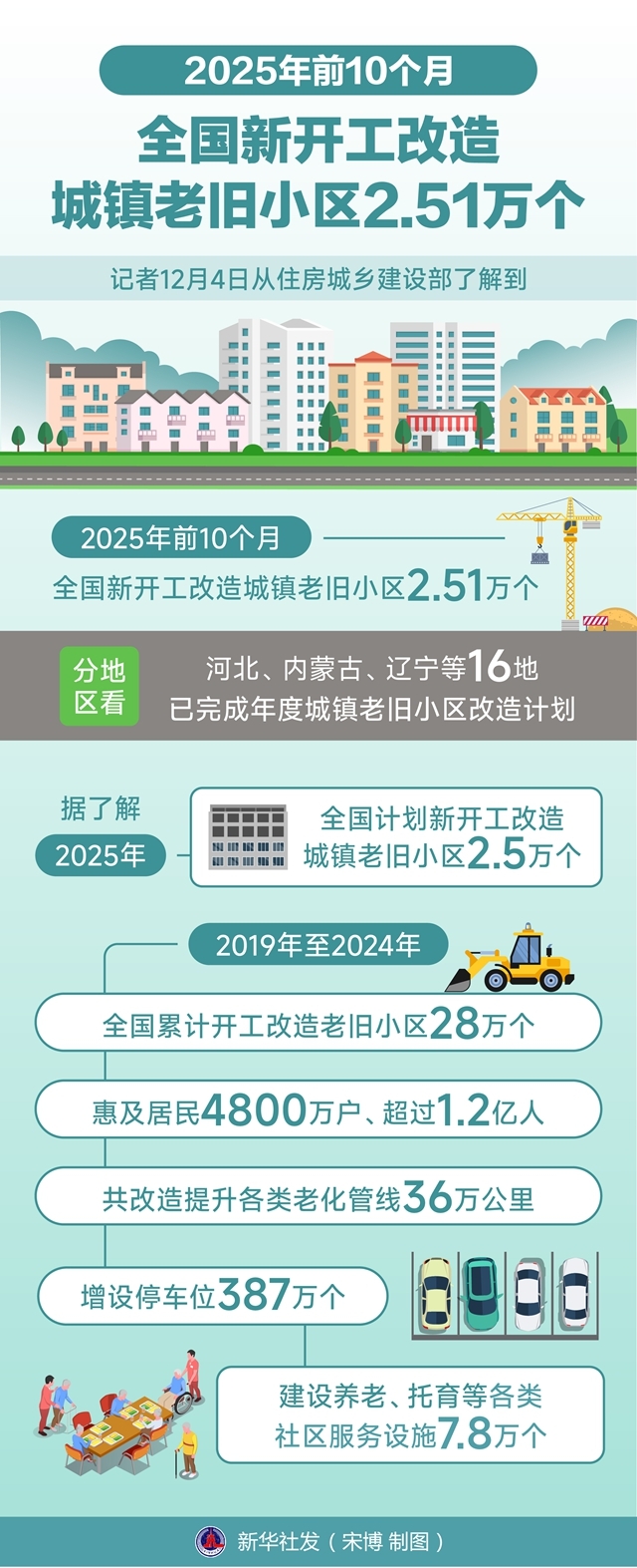 一图读懂 | 2025年前10个月全国新开工改造城镇老旧小区2.51万个