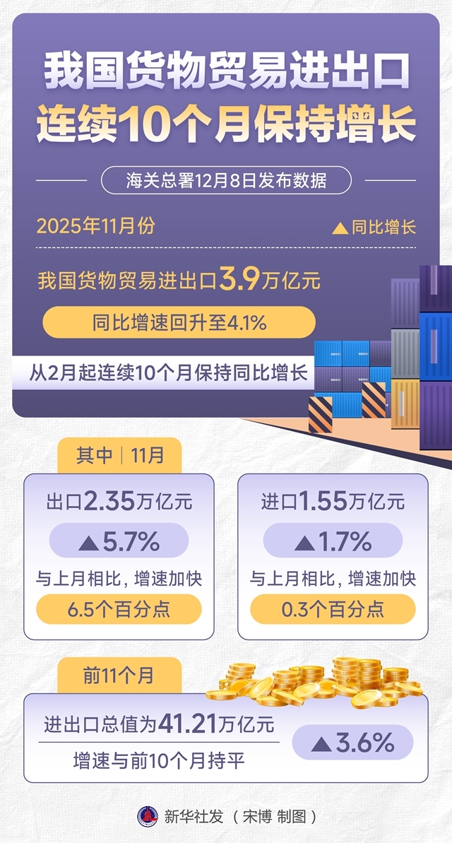 一图读懂 | 我国货物贸易进出口连续10个月保持增长