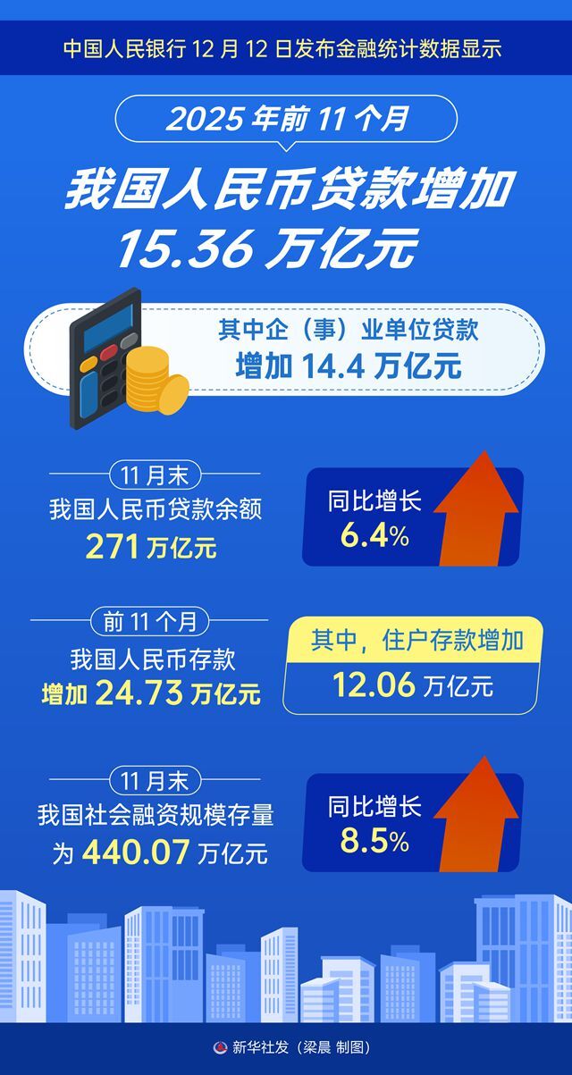 一图读懂 | 2025年前11个月我国人民币贷款增加15.36万亿元