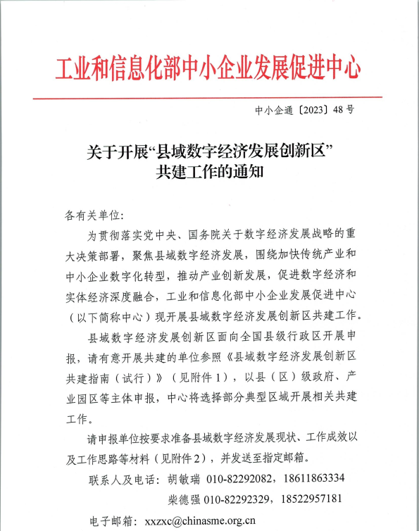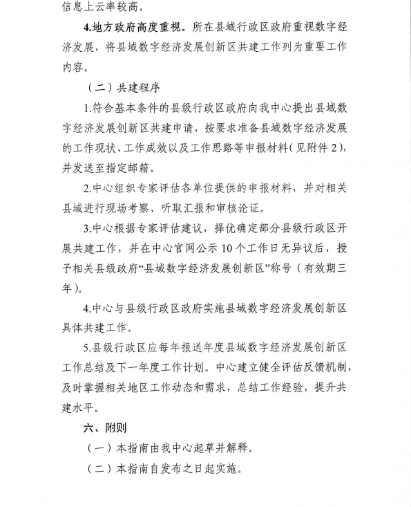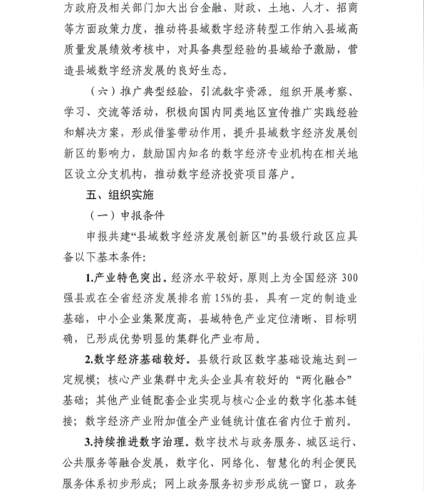关于开展“县域数字经济发展创新区”共建工作的通知