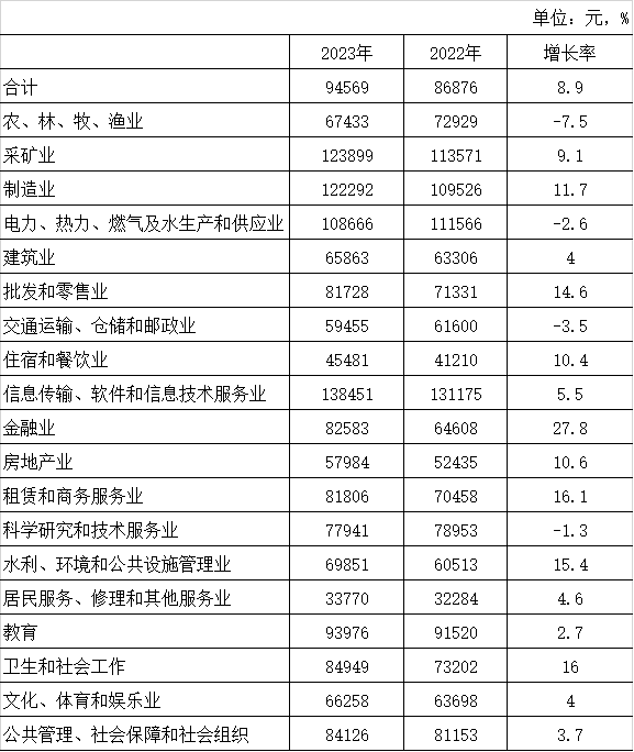 2023年延安市非私营单位就业人员年平均工资为94569元,比2022年增加7693元,增长8.9%。其中,在岗职工年平均工资99823元。