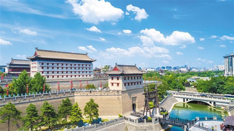 蓝天白云成为全省各地的“标配”。图为西安永宁门一角(资料照片)