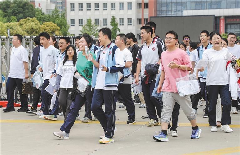六月七日,参加完高考首日考试的考生走出咸阳市实验中学考点。 本报通讯员 李军朝摄