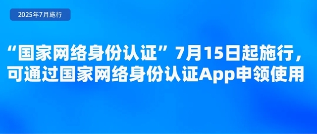 公安部等六部门联合公布的《国家网络身份认证公共服务管理办法》,自2025年7月15日起施行。管理办法明确,根据法律、行政法规规定,在互联网服务中需要登记、核验用户真实身份信息的,可以使用网号、网证依法进行登记、核验。