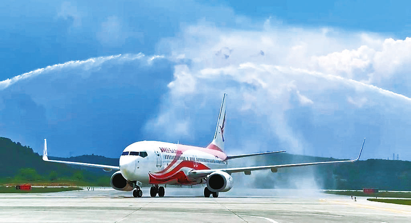 7月1日下午,从苏南硕放机场起飞的瑞丽航空DR5091航班降落在延安南泥湾机场