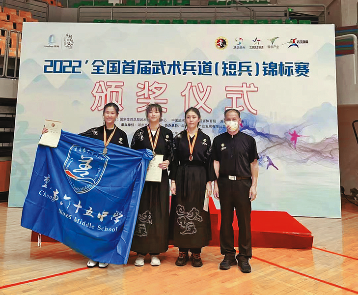 2022年全国首届武术兵道锦标赛,由国家体育总局武术运动管理中心、中国武术协会主办,吸引了来自全国各地的80支队伍的525名运动员报名参加。武术兵道又名武术短兵,是国家体育局武术运动管理中心,中国武术协会正式推出的除武术套路、武术散打之外对抗类竞技武术项目,是武术冷兵器格斗的总称。参赛选手需身穿兵道服和铠甲护具、戴头盔,按照竞赛规则,在同一块场地上用冷兵器互相进行进攻、防守对抗