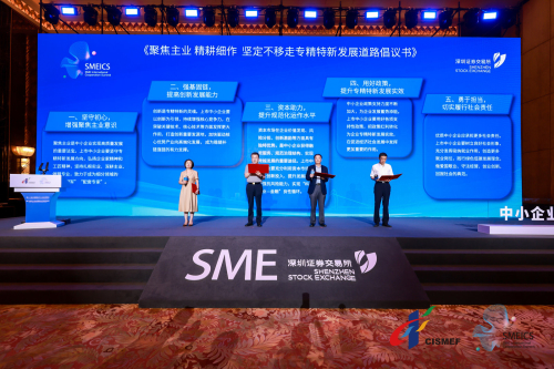 《倡议书》号召各上市中小企业坚定不移走专精特新发展道路,为扎实推进新型工业化,做优做强实体经济贡献积极力量,共同擦亮“专精特新”金字招牌。