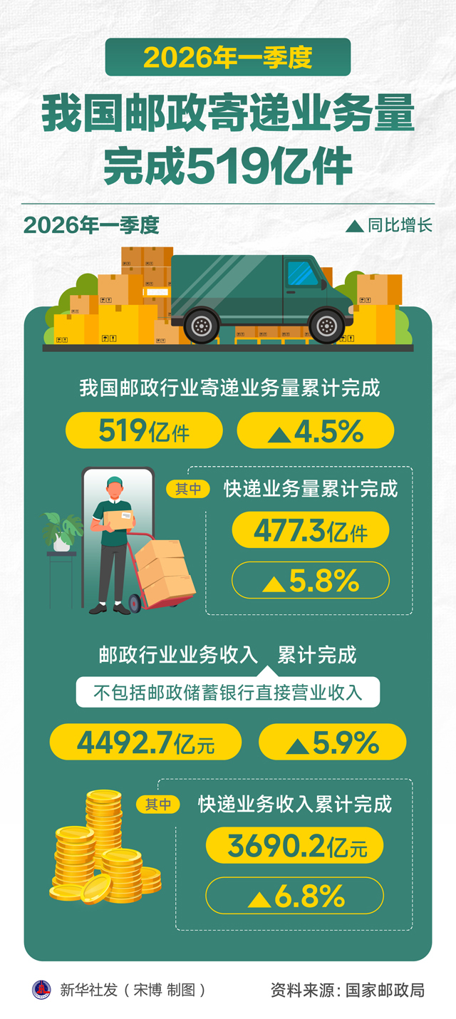 一图读懂 | 2026年一季度我国邮政寄递业务量完成519亿件