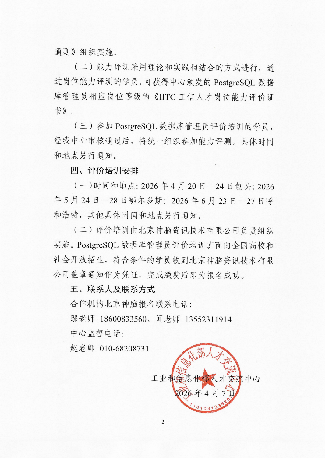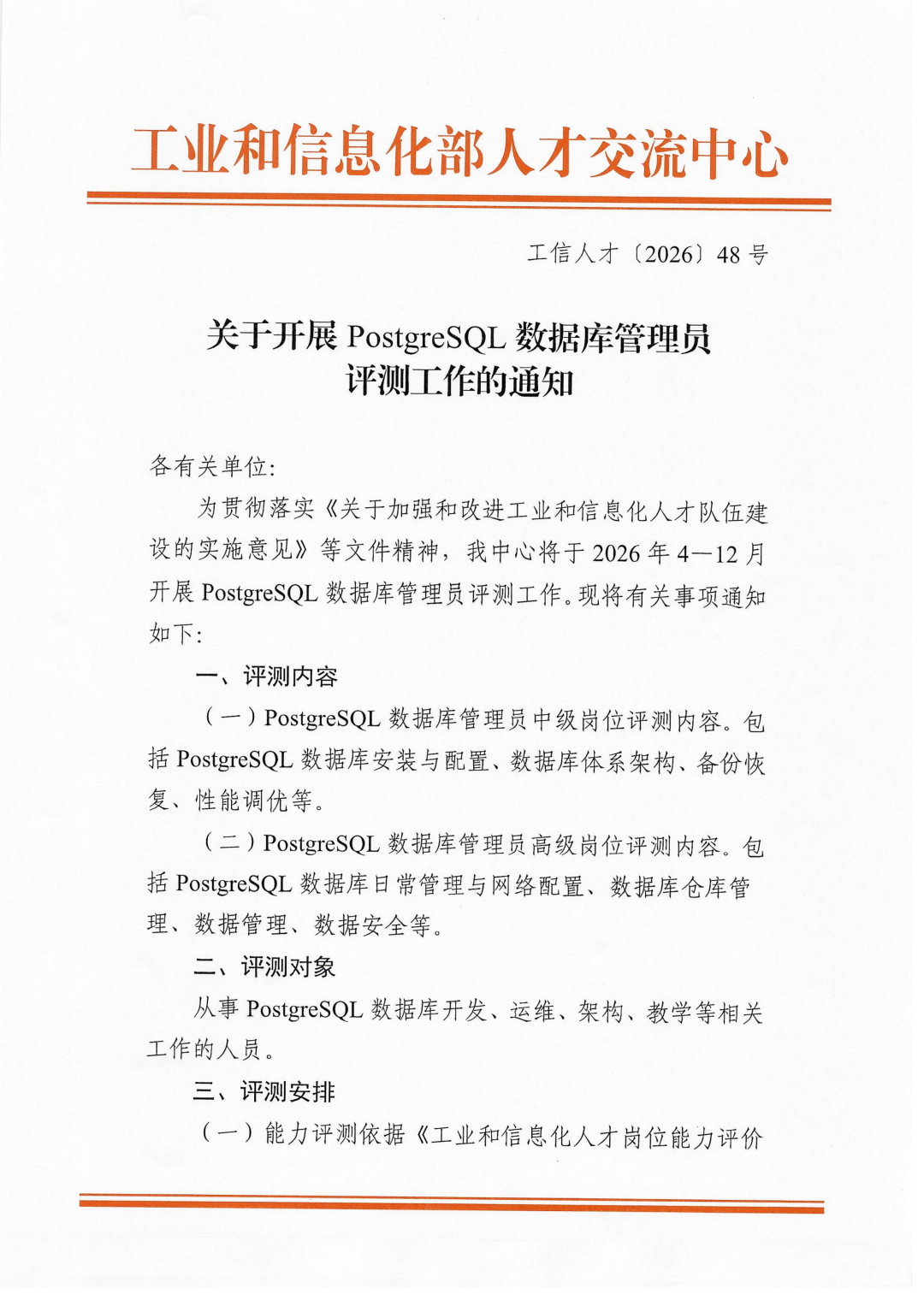 关于开展PostgreSQL数据库管理员评测工作的通知